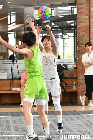 [점프볼=하남/홍기웅 기자] 26일 하남스타필드 특설코트에서 열린 'WKBL 3X3 트리플잼' 켈미와 우리은행의4강경기. 우리은행 김진희가 돌파중 사이드로 패스를 내주고 있다.