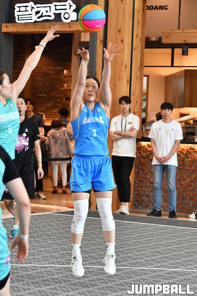 [점프볼=하남/홍기웅 기자] 26일 하남스타필드 특설코트에서 열린 'WKBL 3X3 트리플잼' KEB하나은행과 우리은행의 결승경기. 우리은행 최규희가 점프슛을 던지고 있다.