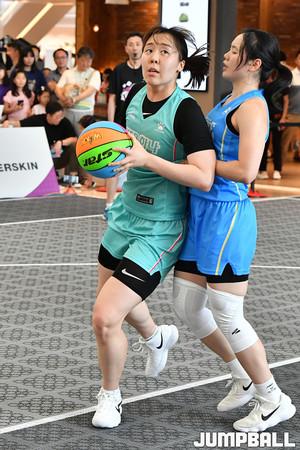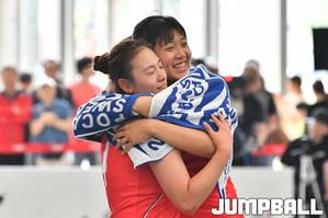 [점프볼=하남/홍기웅 기자] 26일 하남스타필드 특설코트에서 열린 'WKBL 3X3 트리플잼' KEB하나은행과 우리은행의 결승경기. KEB하나가 우승을 확정짓자 서로 얼싸안고 돌고 있다.