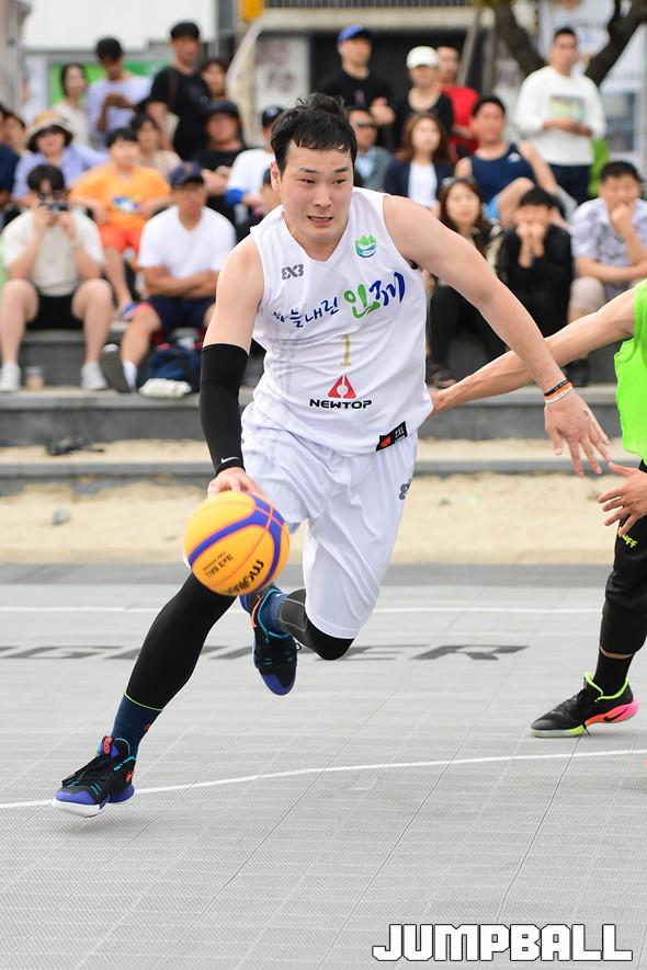 [점프볼=부산/박상혁 기자] 26일 부산 광안리 해수욕장 특설코트에서 열린 2019 KXO리그 2라운드 겸 KXO 3x3 부산투어 2일차 경기, 하늘내린인제 김민섭이 돌파를 시도하고 있다.
