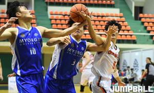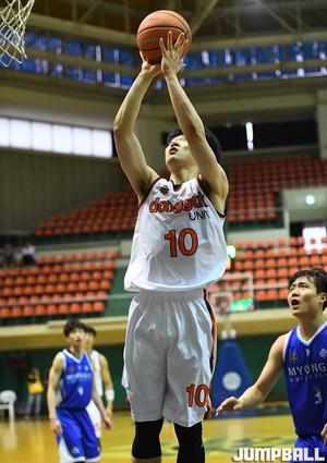 [점프볼=용인/문복주 기자] 27일 명지대 체육관에서 열린 '2019 KUSF 대학농구 U-리그' 명지대와 동국대의 경기, 명지대 문시윤이 외곽에서 3점슛을 시도하고 있다.