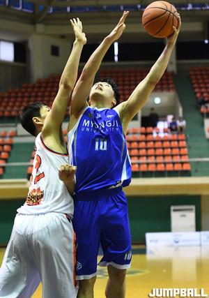 [점프볼=천안/홍기웅 기자] 28일 단국대학교 천안캠퍼스 체육관에서 열린 '2019 KUSF 대학농구 U-리그' 단국대와 고려대의 경기. 단국대 김태호가 점프슛을 던져 득점을 성공시키고 있다.