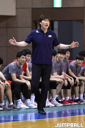 [점프볼=천안/홍기웅 기자] 28일 단국대학교 천안캠퍼스 체육관에서 열린 '2019 KUSF 대학농구 U-리그' 단국대와 고려대의 경기. 고려대 김진영이 투핸드 덩크를 내리 꽂고 있다.