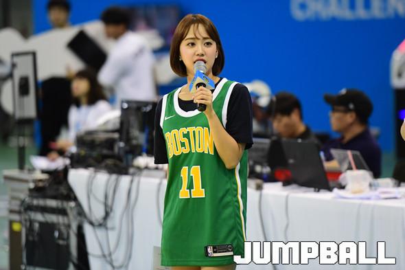 [점프볼=부천/박상혁 기자] 2일 부천실내체육관에서 열린 '이수 3X3 바스켓 챌린지 2019' 대회, 2일차 경기에서 정새미나 아나운서가 스킬챌린지 이벤트를 안내해주고 있다.