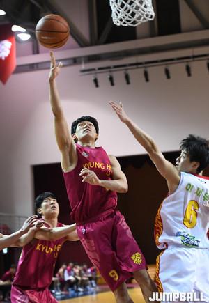 [점프볼=수원/문복주 기자] 3일 수원 경희대학교 국제캠퍼스 선승관에서 열린 '2019 KUSF 대학농구 U-리그' 경희대와 성균관대의 경기, 경희대 이사성이 골밑에서 파이팅 넘치는 공격으로 훅슛을 시도하고 있다.
