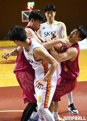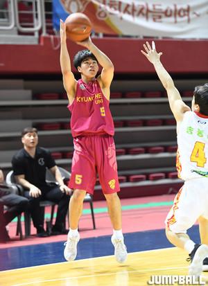 [점프볼=수원/문복주 기자] 3일 수원 경희대학교 국제캠퍼스 선승관에서 열린 '2019 KUSF 대학농구 U-리그' 경희대와 성균관대의 경기, 성균관대 김상준 감독이 작전을 지시하고 있다.