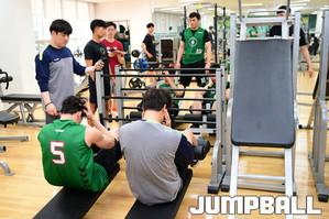 [JB포토] 사다리 훈련에 임하는 DB 김태홍과 김민구
