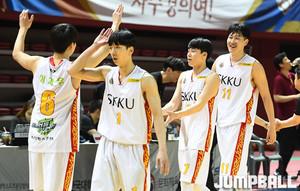 [점프볼=신촌/홍기웅 기자] 7일 연세대학교 신촌캠퍼스 체육관에서 열린 '2019 KUSF 대학농구 U-리그' 연세대와 건국대의 경기. 건국대 남진식이 사이드에서 레이업을 시도하고 있다.