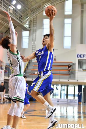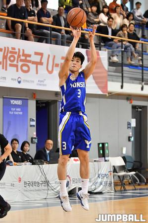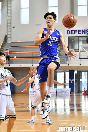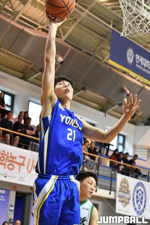 [점프볼=춘천/문복주 기자] 12일 춘천 한림성심대학교체육관에서 열린 '2019 KUSF 대학농구 U-리그' 한림성심대와 수원대의 경기.수원대 김효진이 골밑으로 돌진하고 있다.