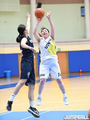 [점프볼=춘천/문복주 기자] 12일 춘천 한림성심대학교체육관에서 열린 '2019 KUSF 대학농구 U-리그' 한림성심대와 수원대의 경기.한림성심대 배유라가 골밑에서 수비리바운드를 다투고 있다.