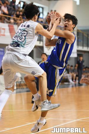 [점프볼=서울/박상혁 기자] 13일 연세대 신촌캠퍼스에서 열린 2019 KUSF 대학농구 U-리그 연세대와 단국대의 경기, 연세대 신승민이 수비를 앞에 놓고 슛을 시도하고 있다.