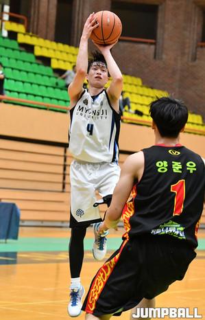 [점프볼=수원/홍기웅 기자] 14일 수원 성균관대학교 자연캠퍼스 체육관에서 열린 '2019 KUSF 대학농구 U-리그' 성균관대와 명지대의 경기. 명지대 이정민이 플루터 슛을 던지고 있다.