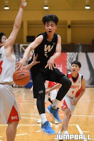 [점프볼=서울/박상혁 기자] 16일 경복고 체육관에서 열린 2019 한국중고농구 주말리그 삼선중과 성남중의 경기, 삼선중 이채형이 골밑으로 들어가고 있다.