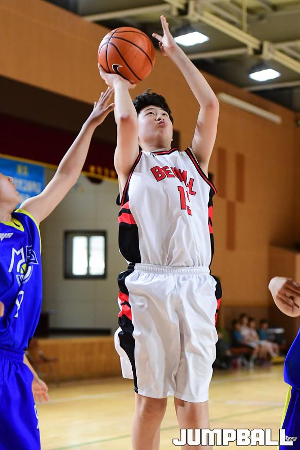 [점프볼=분당/박상혁 기자] 23일 분당경영고에서 열린 2019 전국 유소년 하모니리그 농구리그 수원매산초교와 안양벌말초교의 경기, 벌말초교 정재엽이 골밑슛을 시도하고 있다.