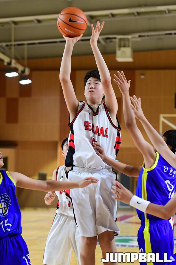[점프볼=분당/박상혁 기자] 23일 분당경영고에서 열린 2019 전국 유소년 하모니리그 농구리그 수원매산초교와 안양벌말초교의 경기, 벌말초교 정재엽이 슛을 시도하고 있다.