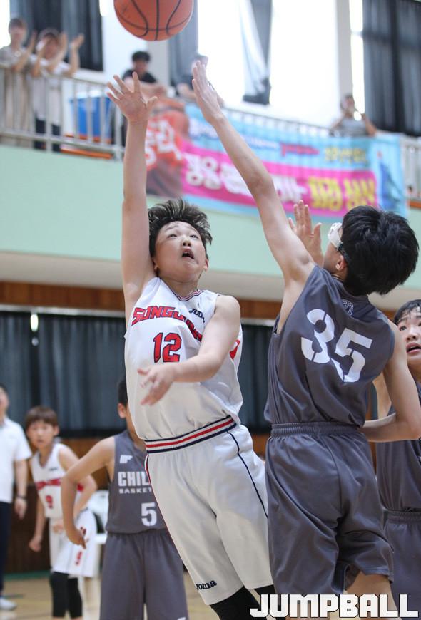 23일 경북 상산초교 체육관에서 열린 2019 전국 유소년농구 하모니농구 경상 권역 예선 경기, 대구 칠곡초교가 난적 울산 송정초교에 49-43으로 역전승 했다.