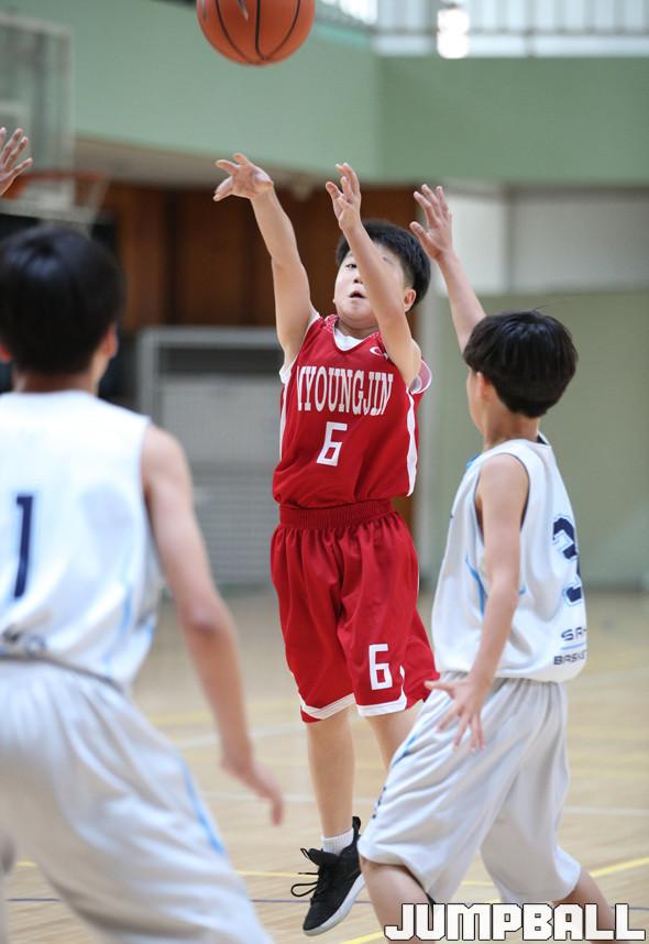 23일 경북 상산초교 체육관에서 열린 2019 전국 유소년농구 하모니농구 경상 권역 예선 경기, 부산 명진초교가 압도적인 공격력의 차이를 보이며 시즌 첫 대회에 나선 창원 사화초교에 42-29로 완승을 거뒀다.