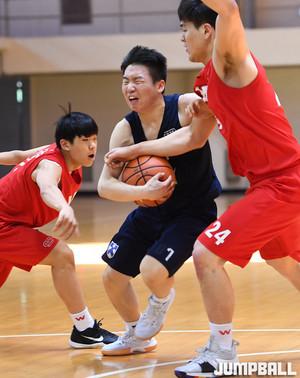 [점프볼=서울/문복주 기자] 23일 서울 양정고 체육관에서열린 2019 중고농구 주말리그 남고부 휘문고와 배재고의 경기에서 휘문고 백승엽이 골밑을 파고들어 레이업을 시도하고 있다.
