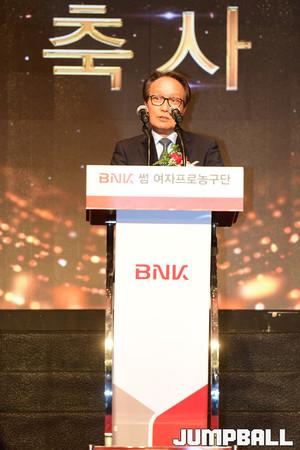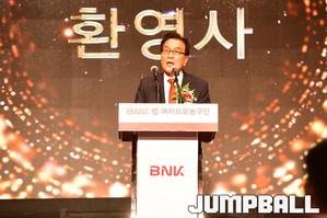 [점프볼=부산/박상혁 기자] 24일 부산롯데호텔 3층 크리스탈볼룸에서 'BNK 썸 여자프로농구단' 공식 창단식이 열렸다. BNK 썸 진안이 유니폼을 입고나와 강렬한 포즈를 취하고 있다.