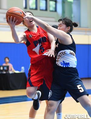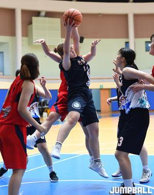 [점프볼=춘천/문복주 기자] 24일 춘천 한림성심대학교체육관에서 열린 '2019 KUSF 대학농구 U-리그' 한림성심대와 부산대의 경기에서 한림성심대 김민정과 윤영주가 집중수비로 부산대 박세림의 돌파를 저지하고 있다.