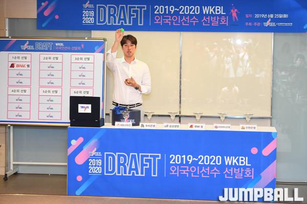 [점프볼=서울/문복주 기자] 25일 서울시 강서구 WKBL 사옥 2층에서 2019-2020 WKBL 외국인선수 선발회에 구단 선발 추첨 볼을 넣고 있다.