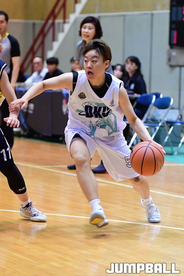 [점프볼=화성/박상혁 기자] 25일 수원대 체육관에서 열린 2019 KUSF 대학농구 U-리그 수원대와 단국대의 경기, 단국대 한선영이 돌파를 시도하고 있다.