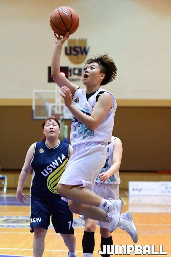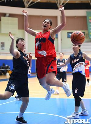 [점프볼=화성/박상혁 기자] 25일 수원대 체육관에서 열린 2019 KUSF 대학농구 U-리그 수원대와 단국대의 경기, 단국대 한선영이 슛을 시도하고 있다.