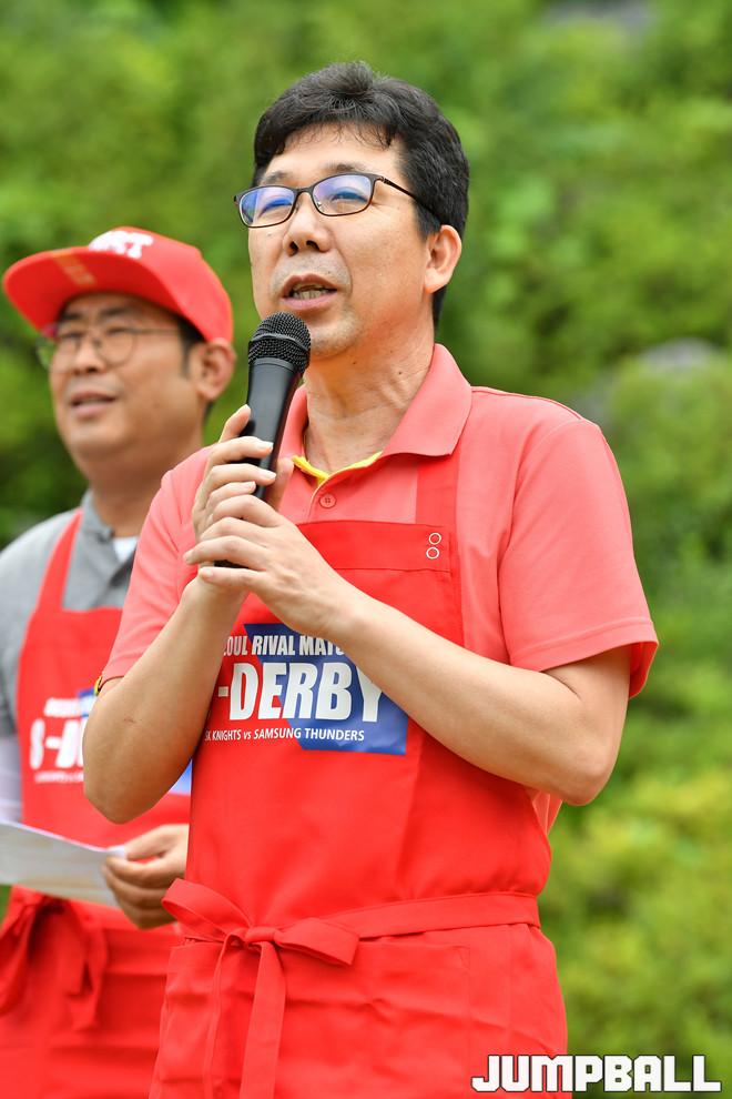 [점프볼=용인/홍기웅 기자] 29일 용인 양지바른 장애인 복지시설에서 열린 S더비(SK, 삼성) 팬과 함께하는 일일 봉사활동. 최상우 양지바른 장애인 복지시설 원장이 일일 봉사를 온 팬들에게 인사말을 전하고 있다.