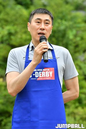 [점프볼=용인/홍기웅 기자] 29일 용인 양지바른 장애인 복지시설에서 열린 S더비(SK, 삼성) 팬과 함께하는 일일 봉사활동. SK 문경은 감독과 삼성 이상민 감독이 각 팀의 봉사활동(잡초 제거, 감자 캐기)을 정하기 위해 가위 바위 보로 승부에서 삼성 이상민 감독이 승리하자 팬들에게 어떤 봉사활동을 할지 묻고 있다.