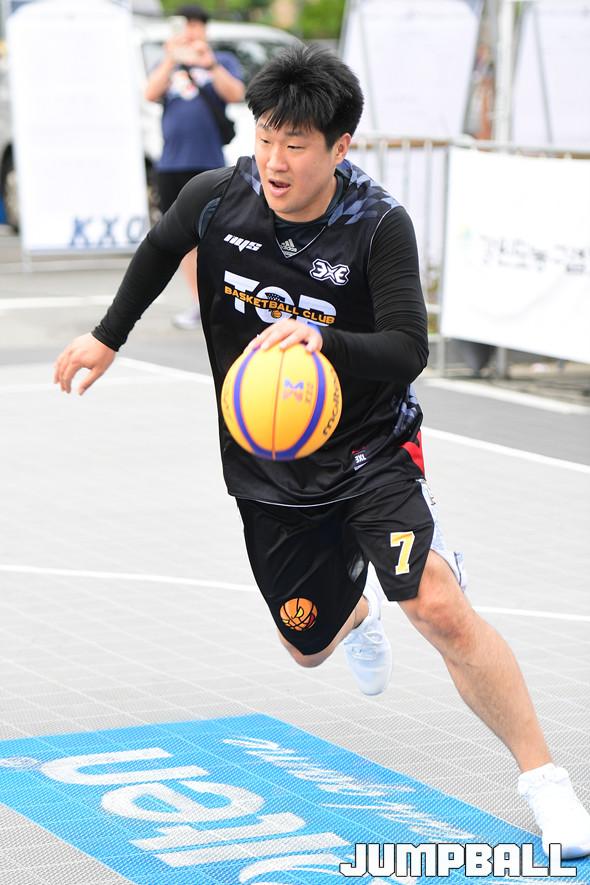 [점프볼=홍천/박상혁 기자] 29일 홍천 비발디 파크에서 열린 2019 KXO 3라운드 겸 홍천대회 1일차 경기, 안산TOP 전정규가 돌파를 시도하고 있다.