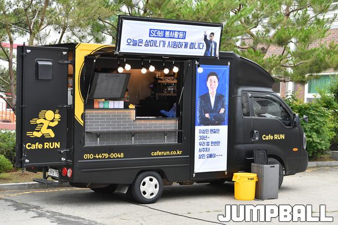 [JB포토] 삼성 이상민 감독 팬이 봉사활동 참가 두팀 팬들을 위해 준비한 커피차