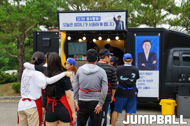 [점프볼=용인/홍기웅 기자] 29일 용인 양지바른 장애인 복지시설에서 열린 S더비(SK, 삼성) 팬과 함께하는 일일 봉사활동. 봉사활동에 참가한 두팀 팬들이 커피차에 줄을 서 음료를 주문하고 있다.
