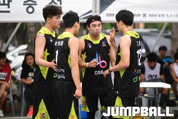 [점프볼=홍천/박상혁 기자] 30일 홍천 비발디 파크에서 열린 2019 KXO 3라운드 겸 홍천투어 2일차 경기, DSB가 작전타임을 불러 작전을 의논하고 있다.