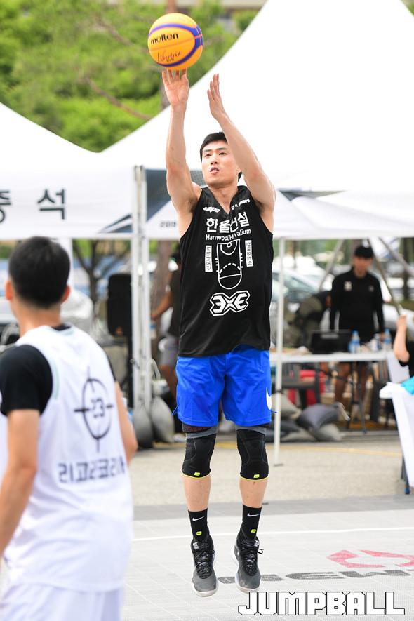 [점프볼=홍천/박상혁 기자] 30일 홍천 비발디 파크에서 열린 2019 KXO 3라운드 겸 홍천투어 2일차 경기, 한울건설 방성윤이 2점슛을 시도하고 있다.