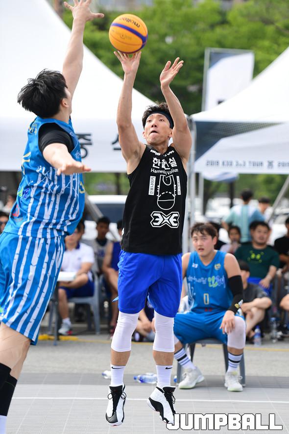 [점프볼=홍천/박상혁 기자] 30일 홍천 비발디 파크에서 열린 2019 KXO 3라운드 겸 홍천투어 2일차 경기, 리그 결승전에서 한울건설 김상훈이 슛을 시도하고 있다.