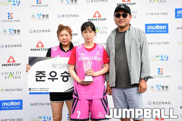[점프볼=홍천/박상혁 기자] 30일 홍천 비발디 파크에서 열린 2019 KXO 3라운드 겸 홍천투어 2일차 경기, 여자 오픈부에서 준우승을 차지한 핫핑크가 기념촬영을 하고 있다.