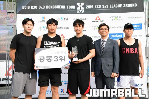 [점프볼=홍천/박상혁 기자] 30일 홍천 비발디 파크에서 열린 2019 KXO 3라운드 겸 홍천투어 2일차 경기, 오픈부 막내가 누굴까 팀이 공동 3위를 차지하였다.