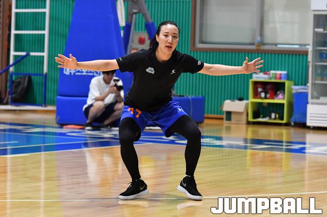 [점프볼=용인/홍기웅 기자] 4일 용인에 위치한 삼성트레이닝센터에서 열린 '2019 Dreams Come True With BLUEMINX'는 블루밍스 선수들이 고등학교 엘리트 농구선수들을 대상으로 재능을 기부하고 멘토링을 하는 사회공헌 프로그램이다. 삼성생명 김보미가 사이드 스텝 연습에 팔을 펼쳐 수비 연습을 하고 있다.
