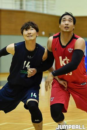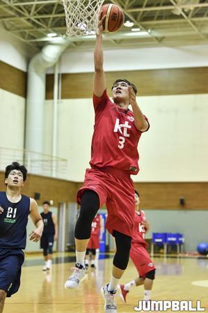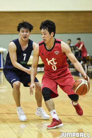 [점프볼=수원/홍기웅 기자] 10일 수원 KT 올레 빅토리움에서 열린 KT와 건국대의 연습경기. 건국대 최진광이 앞에 있는 동료를 향해 패스를 찔러주고 있다.