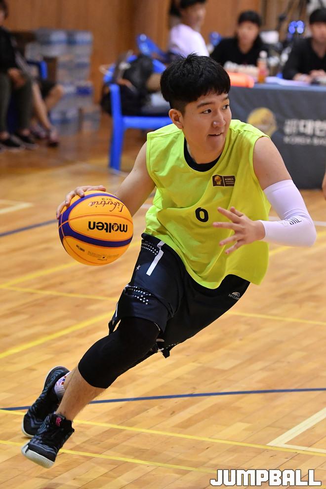[점프볼=부산/홍기웅 기자] 13일 부산중앙고등학교 체육관에서 열린 'KB국민은행 리브 2019 KBA 3X3 코리아 투어 부산' U18 창원 어시스트와 siboM의 경기. siboM이 드리블 돌파를 시도하고 있다.