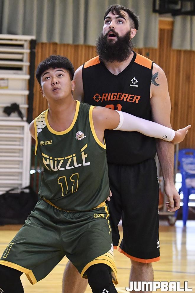 [점프볼=부산/홍기웅 기자] 13일 부산중앙고등학교 체육관에서 열린 'KB국민은행 리브 2019 KBA 3X3 코리아 투어 부산' 오픈부 리고러코리아와 부산여행의 경기. 부산여행이 리고러코리아 외국인 선수를 상대로 박스아웃을 펼치고 있다.