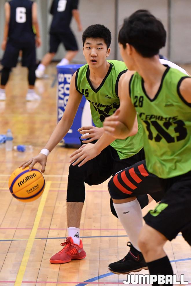 [점프볼=부산/홍기웅 기자] 13일 부산중앙고등학교 체육관에서 열린 'KB국민은행 리브 2019 KBA 3X3 코리아 투어 부산' 선발전 케페우스와 Team국진호의 경기. 케페우스가 앞에있는 동료에게 눈빛을 보내고 있다.
