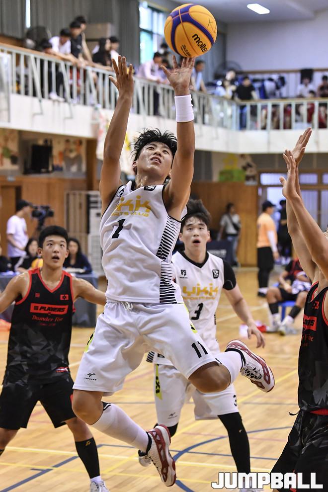 [점프볼=부산/홍기웅 기자] 13일 부산중앙고등학교 체육관에서 열린 'KB국민은행 리브 2019 KBA 3X3 코리아 투어 부산' 선발전 YKK B와 썬더파이브의 경기. YKK B가 골밑슛을 시도하고 있다.