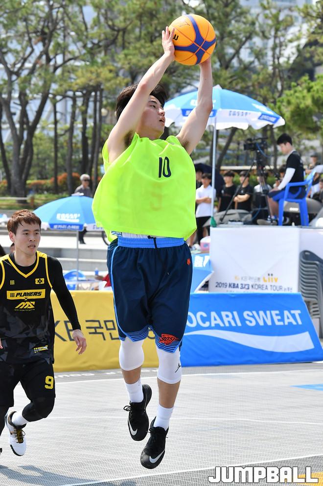 [점프볼=부산/홍기웅 기자] 14일 해운대 해수욕장 특설코트에서 열린 'KB국민은행 리브 2019 KBA 3X3 코리아 투어 부산' 오픈부 8강 모션스포츠와 부산의밤의 경기. 부산의밤이 리바운드를 잡아내고 있다.