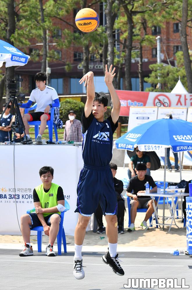 [점프볼=부산/홍기웅 기자] 14일 해운대 해수욕장 특설코트에서 열린 'KB국민은행 리브 2019 KBA 3X3 코리아 투어 부산' U15 4강 모션스포츠5와 모션스포츠1의 경기. 모션스포츠1이 점프슛을 시도하고 있다.