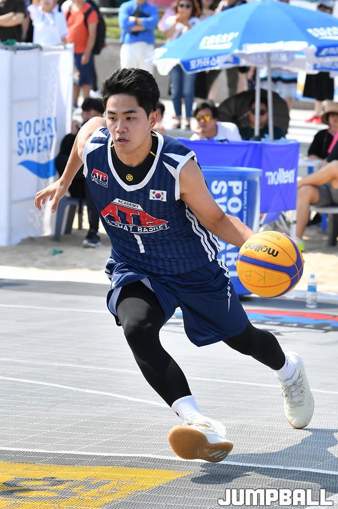 [점프볼=부산/홍기웅 기자] 14일 해운대 해수욕장 특설코트에서 열린 'KB국민은행 리브 2019 KBA 3X3 코리아 투어 부산' 리그 6강 ATB와 에너스킨의 경기. ATB가 드라이브인 돌파를 시도하고 있다.