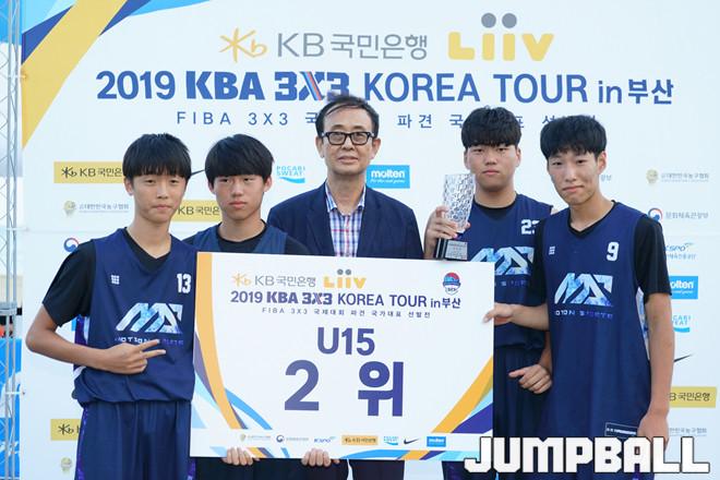 [점프볼=부산/홍기웅 기자] 14일 해운대 해수욕장 특설코트에서 열린 'KB국민은행 리브 2019 KBA 3X3 코리아 투어 부산'. U15 2위로 모션스포츠 1이 수상했다.