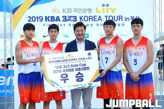 [점프볼=부산/홍기웅 기자] 14일 해운대 해수욕장 특설코트에서 열린 'KB국민은행 리브 2019 KBA 3X3 코리아 투어 부산'. U18 국가대표 선발전에서 팀코리아 2.5가 출전권을 획득했다.