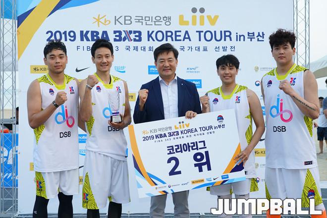 [점프볼=부산/홍기웅 기자] 14일 해운대 해수욕장 특설코트에서 열린 'KB국민은행 리브 2019 KBA 3X3 코리아 투어 부산'. 리그전 2위로 DSB가 수상했다.