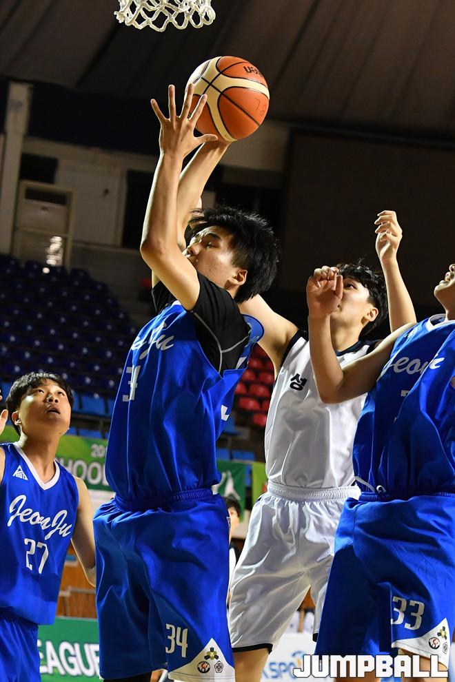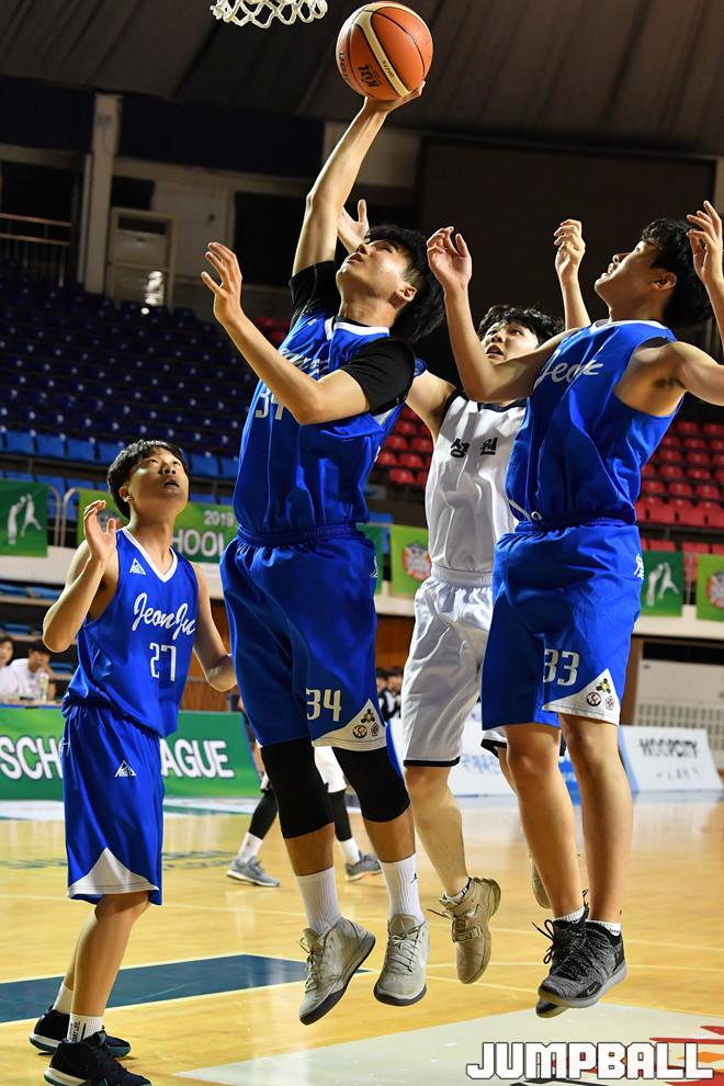 [점프볼=전주/홍기웅 기자] 20일 전주실내체육관에서 열린 '2019 KBL 스쿨리그' 전주지역예선 전주고와 성원고의 경기화보.